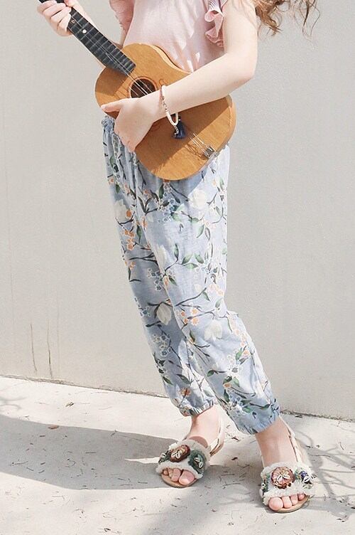ゆったりデザインで動きやすい 花柄リラックスパンツ