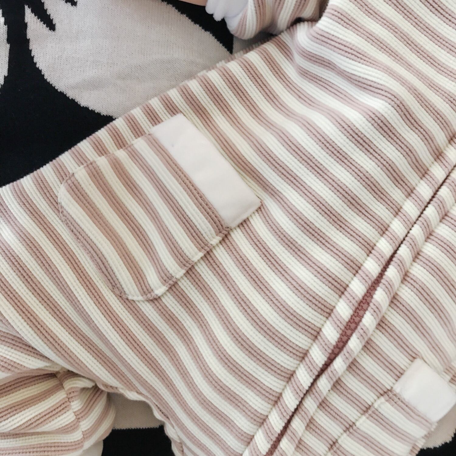 裏地ボアで暖かい ボーダー柄うさぎカバーオール